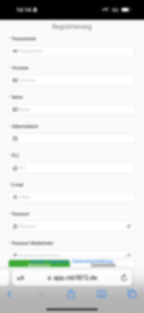 Die App macht dabei eine Live-Anfrage an die RSB-Mitgliederdatenbank ZMI. Die Felder Passnummer, Vorname, Nachname, Geburtsdatum und PLZ müssen exakt übereinstimmen mit dem Datenbestand in der RSB-Mitgliederverwaltung ZMI, der über Ihren Verein in die Mitgliederverwaltung eingepflegt wurde. Wenn Ihre eingetragenen Daten gefunden wurden, werden Sie registriert und Sie sehen die Startseite.
